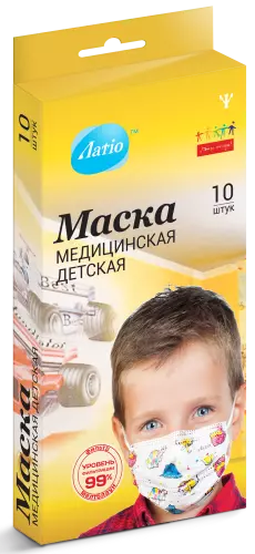 Детская медицинская маска «Латio» с рисунком «звери». Маска имеет специальный уменьшенный размер, который подходит для детей от 3 до 14 лет. Высокоэффективный фильтр обеспечивает высокую степень защиты. Нежный гипоаллергенный материал не затрудняет дыхание. В маске используется уникальный "фиксатор формы" (патент ООО «КИТ» на полезную модель № 110937), который препятствует соприкосновению маски со ртом даже при сильном вдохе. Особая сборка «Омега» формирует оптимальную форму воздушного кармана, и обеспечивает плотное прилегание маски к лицу. Мягкие ушные петли на широкой плоской резинке, надежно фиксируют маску, и не натирают даже при длительном ношении. Время использования до 6 часов.